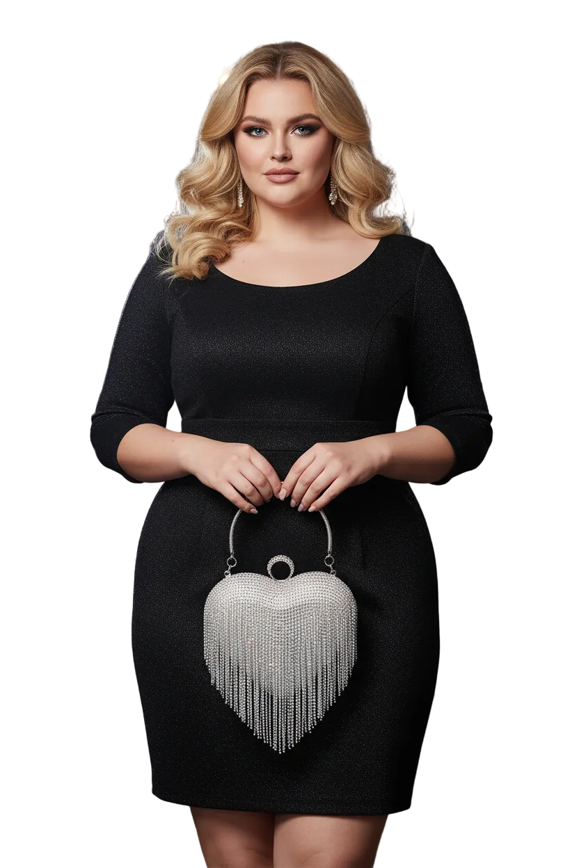 Maak een statement met deze prachtige hartvormige clutch, ontworpen om elke avondlook een vleugje glamour en verfijning te geven. De tas is bedekt met glinsterende kristalachtige versieringen en heeft vloeiende franjes die bij elke beweging prachtig het licht vangen. Het gestructureerde silhouet wordt geaccentueerd door een chique handvat aan de bovenkant en een decoratieve ringsluiting, waardoor de tas zowel stijlvol als praktisch is.
