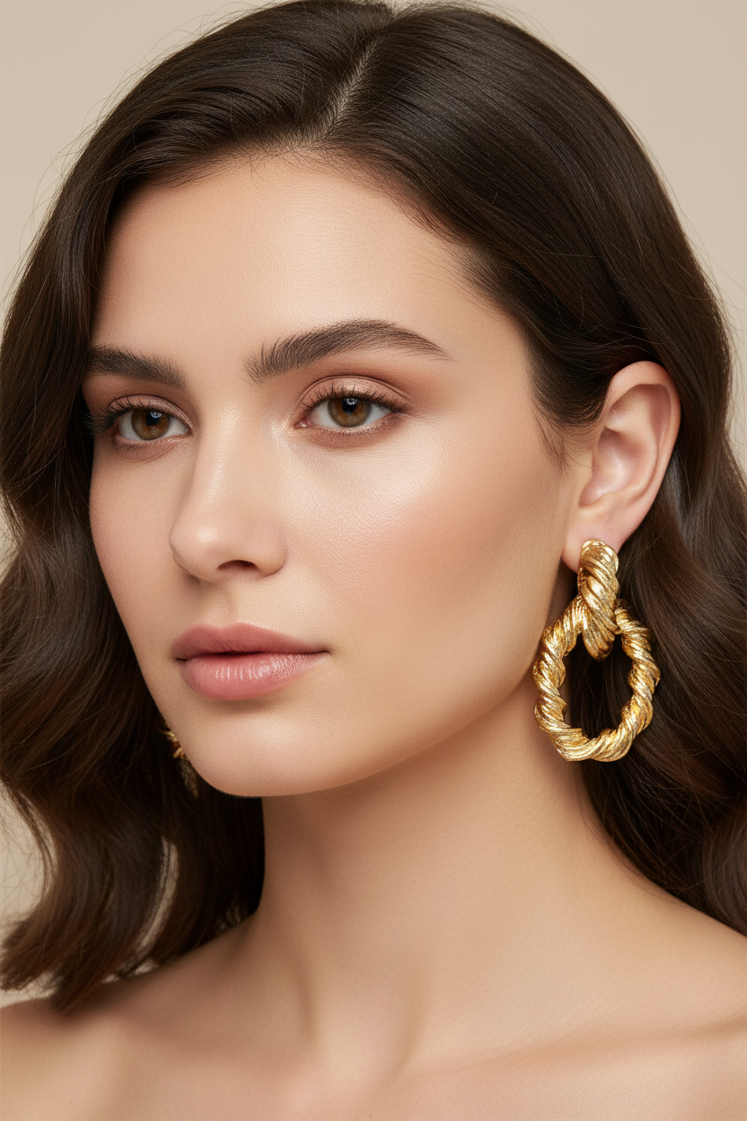DALIA – Złote Kolczyki Grain Spiral. Połącz te cudeńka z elegancką białą koszulą zapinaną na guziki i eleganckim upięciem, aby uzyskać zachwycający, minimalistyczny efekt!