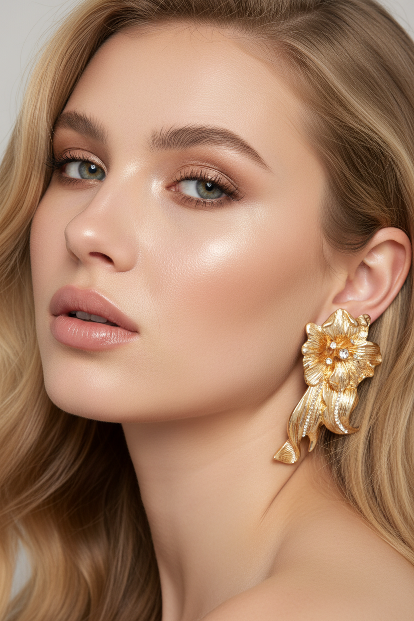 DALIA - Złote kolczyki z kwiatami