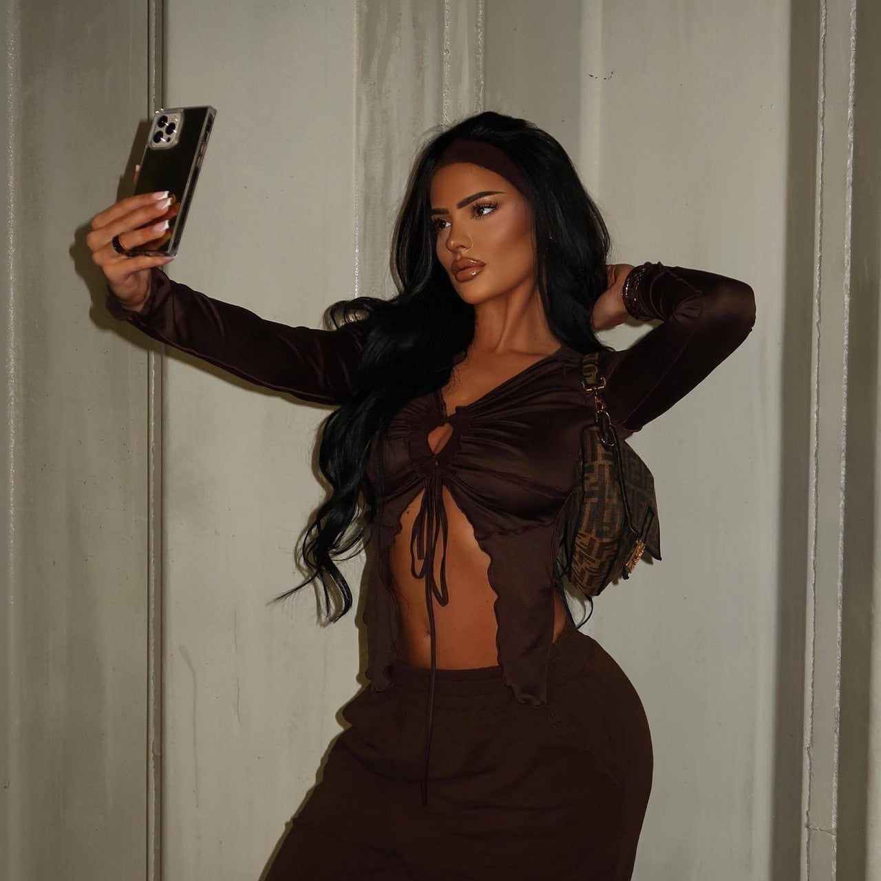The long sleeves and soft stretch fabric provide comfort while maintaining an elegant look. Perfect for nights out, special occasions, or styled with matching pieces for a coordinated outfit.